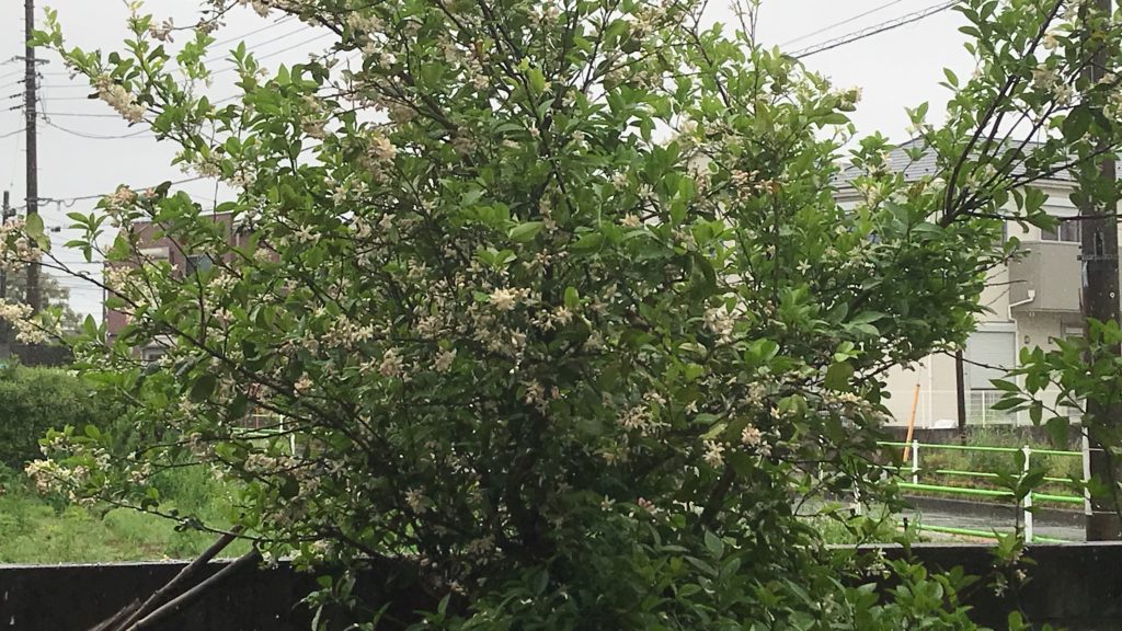 今年も我が家の庭のレモンの木にお花が咲きました。